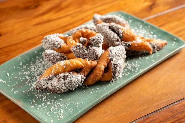 Gyúrjuk össze a tésztát, majd nyújtsuk négy-öt milliméter vastagságúra, és derelyevágóval vagy késsel vágjunk rombuszokat. A rombuszok közepén átlósan vágjuk be a tésztát, majd fordítsuk át a vágáson a tészta egyik vagy mindkét sarkát. Bő olajban vagy zsírban süssük ki a fánkokat, óvatosan, lassan süljenek, ne égjenek meg. (Olajban sütés esetén magasabb falú edényt érdemes választani, mivel a tésztában lévő kókusz miatt erőteljesebb a habképződés.)
