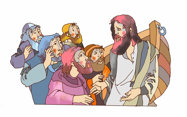 Jézus egész nap tanított. Sok ember gyűlt köré, hallgatták a szavait. Mire este lett, Jézus nagyon elfáradt, és haza akart menni. Ám ahhoz át kellett kelni a Genezáreti-tavon, amit tengernek is hívtak, olyan hatalmas volt.