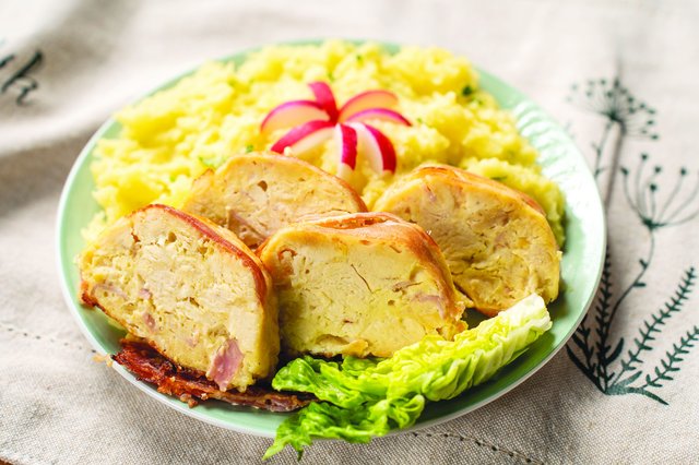 A szeleteléssel várjuk meg, míg kissé kihűl. Ha dekoratívan, hidegtálakon szeretnénk tálalni, akkor hagyjuk egészben teljesen kihűlni, és éles késsel ujjnyi vastagságúra szeleteljük fel tálalás előtt. Petrezselymes törtburgonyával igazán finom.
