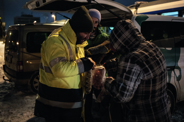 Lukács Sándor adománykoordinátor néhány autóval arrébb osztja a meleg pokrócokat, közben mosolyogva érdeklődik az ott várakozók hogyléte felől. A jelenetekből hamar kiderül: nem csak a szociális munkások csapata működik összehangoltan. Sipos Zoltán elmondja, az évek során az utcán élőkkel is szoros kapcsolat alakul ki, sokakat név szerint ismernek, a találkozások már nem idegenek között zajlanak. Ilyen hidegben pedig az esti munka után felkeresik azokat a helyszíneket, ahol a hajléktalanok megszoktak húzódni, hogy behívják őket az éjszakai menedékhelyre vagy a krízispontra. Szerinte ezekben az esetekben kulcskérdés a bizalom.