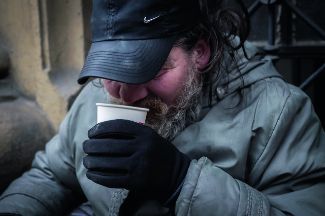 Nem sokkal később idősebb, már őszülő férfi jön velünk szembe az utcán. Amikor Szabó József megszólítja és teával kínálja, örömmel elfogadja. A meleg ital fölött néhány percre megáll beszélgetni velünk. Amikor azonban hálózsákot ajánlunk fel neki, nemet mond: nincs rá szüksége, megvan mindene. Szinte hihetetlen hallani mindezt olyan valakitől, aki pár perccel korábban még arról számolt be, milyen nehéz, emberhez nem méltó körülmények között él. Mégis, amikor a segítséget felkínáljuk, határozottan elhárítja. A csendes elutasításban mintha büszkeség is volna, ragaszkodás a megszokott rendhez, és talán bizalmatlanság.