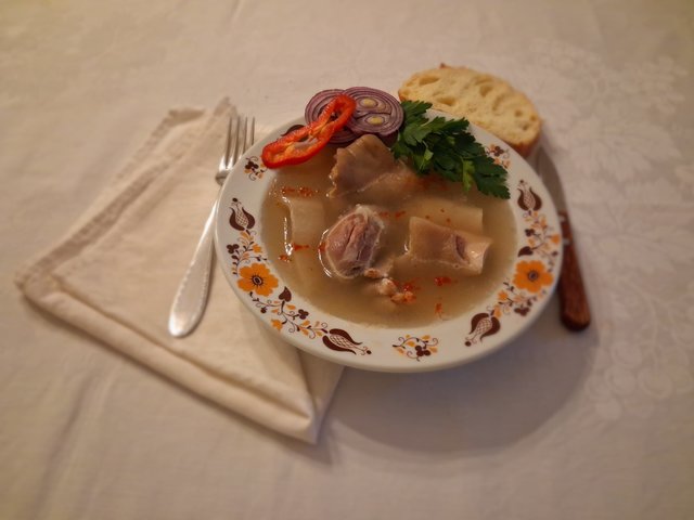 A családunkban hagyomány a kocsonyafőzés, még a szüleinktől tanultuk a régi receptek szerint. Mivel a hidegben jól megdermed a leve, most van itt az ideje a készítésének. Ha valakinek nincs hideg kamrája, teraszon, erkélyen is hűthető.