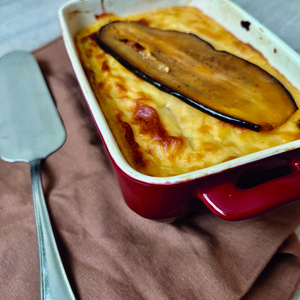 Ez az ikonikus rakott fogás zamatos zöldségekkel, fűszeres hústöltelékkel és selymes besamellel készül. Akár ünnepi asztalra is szánhatjuk lenyűgöző látványként, gazdag, ízletes görög klasszikus, ráadásul egy nagycsaládnak is bőségesen elegendő.